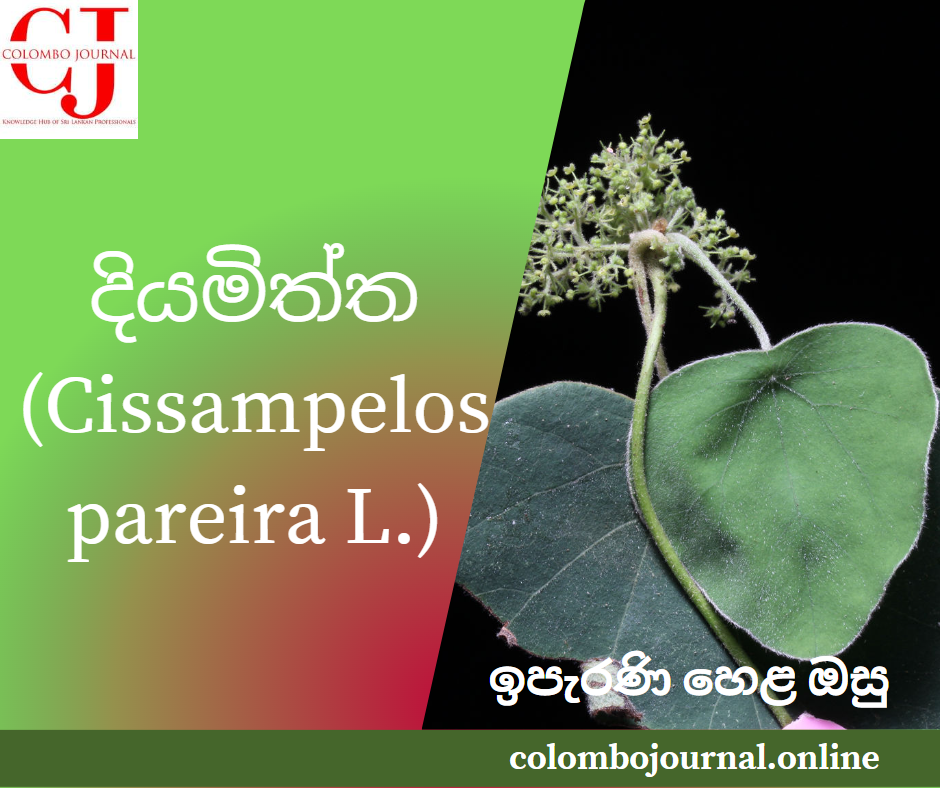 Menispermaceae කුලයට අයත් දේශීය ශාක විශේෂයක් වන මෙය ආධාරක ශාකයක් මත වැවෙන සියුම් බූවක් සහිත වැලකි. දියමිත්ත කොළ හීනිවට ඉරා ජලය ස්වල්පයක් මුසුකර පොඩිකිරීමේදී සෑදෙන උකු ද්රවණය මිදෙන්නට තබා අතුරුපසක් ලෙස කෑමට ගත හැකිය. එය සිරුර සිසිල් කරවයි.