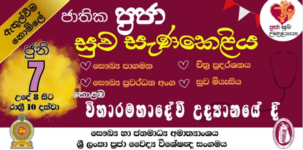 ජූනි 07 වෙනිදා උදේ 8 සිට රාත්රී 10 දක්වා කොළඹ විහාරමහාදේවී උද්යානයේ දී.