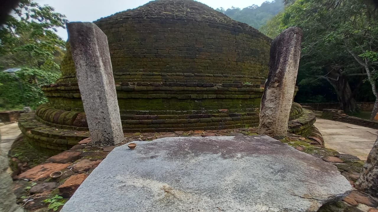 මෙහි ස්තූපයක්, ප්රතිමා ගෘහයක් ඇතුළු පැරැණි ගොඩනැගිලි නටබුන් දැකිය හැකි අතර ඒවා පුරාවිද්යා දෙපාර්තමේන්තුව විසින් සංරක්ෂණය කර තිබේ. මෙහි වනාන්තරය දෙසට යන අතරමඟ නිල්දිය පොකුණ නමින් හැඳින්වෙන අලංකාර පොකුණක් දැකගත හැක. එහි ජලය ඉතා නිල් පැහැයෙන් යුක්ත වන අතර ඉතා මනරම් දසුනකි. මෙහි ඉතිහාසය විජයාගමනයට පෙර යුගයට නෑකම් කියයි. ඖෂධ පොකුණ වෙත ගමන් කිරීමට අප යොදාගත් මෙම මාර්ගය තරමක් අපහසුය. විශාල ගල් මතින් නගිමින් ගමන් කළ යුතුය. එමෙන්ම සර්ප විශේෂ, වන සතුන් මෙම ප්රදේශයේ වාසය කරන බවට සාධක හමුවේ. වනාන්තරය මැදින් ගමන් කිරීමට ඇති නිසා වෙහෙස සංසිඳවා ගනිමින් විඩාව නිවාගනිමින් ගමන් කළ හැක. ඖෂධ පොකුණ වෙත යාමට අපට පැය තුනක පමණ කාලයක් ගත විය. මෙම මාර්ගය කඳු නගින්නන් විසින් භාවිතා කරන්නකි. එහි අඩි පාර හොඳින් පවතී. එම නිසා මාර්ගය සොයා ගැනීම ඉතා පහසුය.