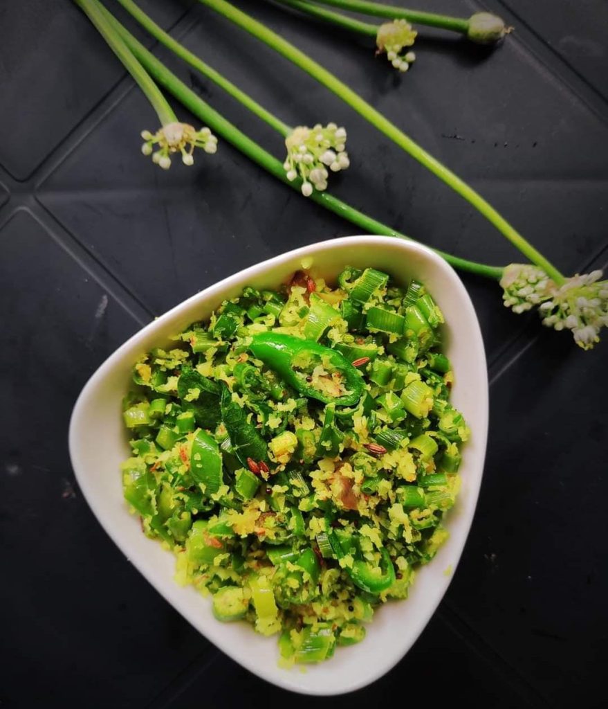 *ළූනු මල් ටික එක්කර,එයටම උම්බලකඩ,කහ,ලුණු එක්කර මිශ්රකර විනාඩි දෙක තුනක් පියනකින් වසා තබන්න.(අඩුම ගින්දරේ තැබිය යුතුයි )