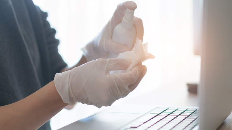 ඔබට විෂබීජ නාශක පිසදැමීම් භාවිතා කළ හැකි නමුත් ප්රවේශම් වන්න. සමහර විසබීජ හරණ ද්රාවණ සුදුසු නොවිය හැකි අතර යතුරු අකුරු වලටද හානි කළ හැකි බැවින් පළමුව මාර්ගෝපදේශ පරීක්ෂා කරන්න.