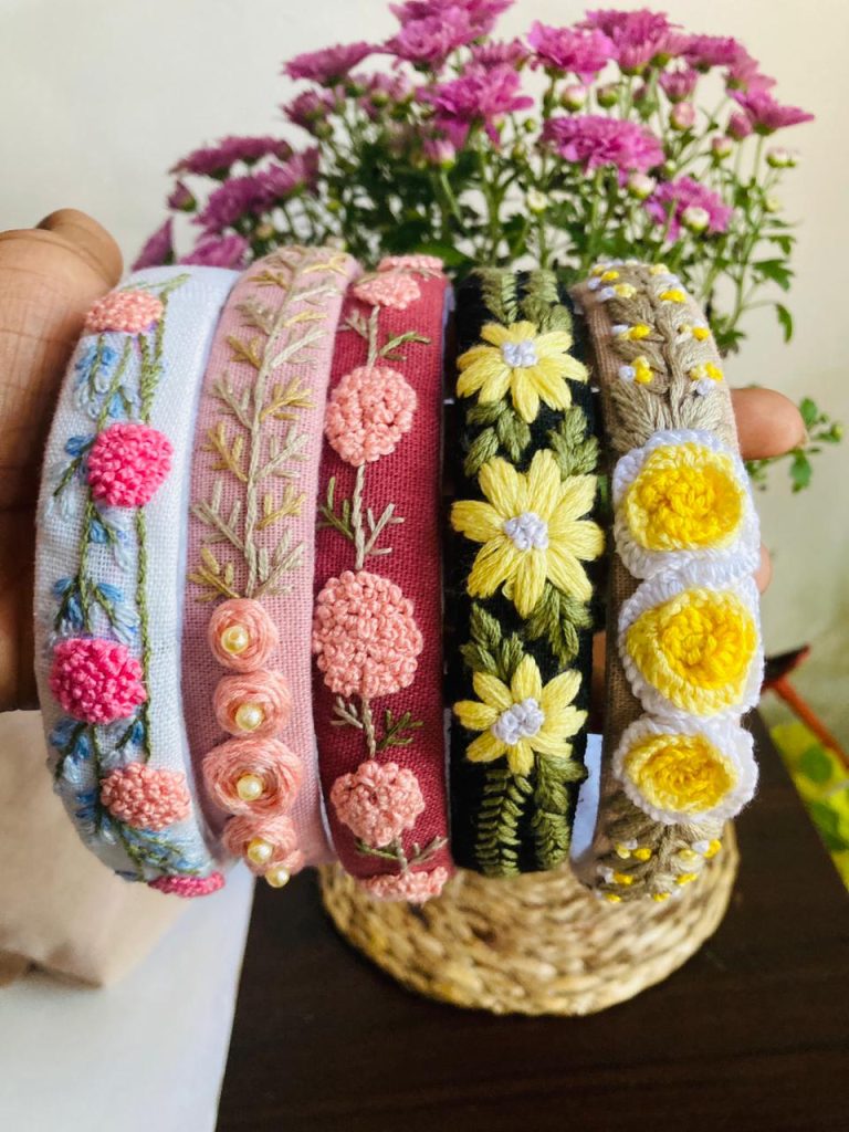 මම මුලින්ම ස්ක්රන්චි වගේ නිර්මාණ කළා. ඒවාත් ලස්සනට ආවා. මම ඒවායේ ෆොටෝ වට්ස්ඇප් ස්ටේ්ටස් ඡායාරූපයකින් මගේ මිතුරන්ට යොමු කළා. මේවා දකින හැම කෙනෙක්ම හරිම ඇගයීමෙන් කථා කළා.