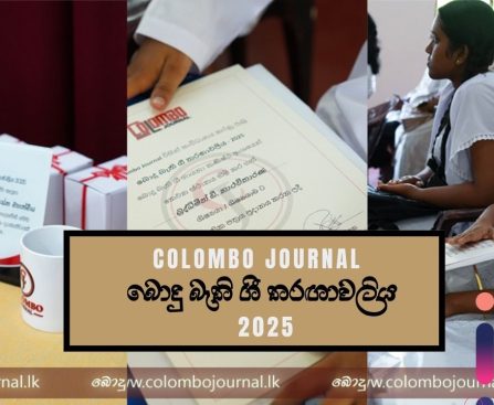 Colombo Journal මාධ්ය ආයතනය මගින් පළමු වරට සංවිධානය කරන ලද බොදු බැති ගී තරඟාවලියේ ත්යාග ප්රධානෝත්සවය පසුගිය 16 වන සෙනසුරාදා දි ගල්කිස්ස ශ්රී සුගත ධර්මායතනායේදී පැවැත්වුණි. එම අවස්ථාව සඳහා ශ්රී සුගත ධර්මායතනාධිපති ශ්රී විමලසිරි දහම් පාසල් ප්රධාන ආචාර්ය ශාස්ත්රපති පූජ්ය මොරකැටි ආරේ සුමනනන්ද ස්වාමීන් වහන්සේගේ ප්රධානත්වයෙන්, ප්රවීණ සංගීතවේදී ආර්.ඒ චන්ද්රසේන සූරීන්ගේ දියණිය වන ලලිතකලාවේදි විශාරද […]